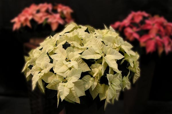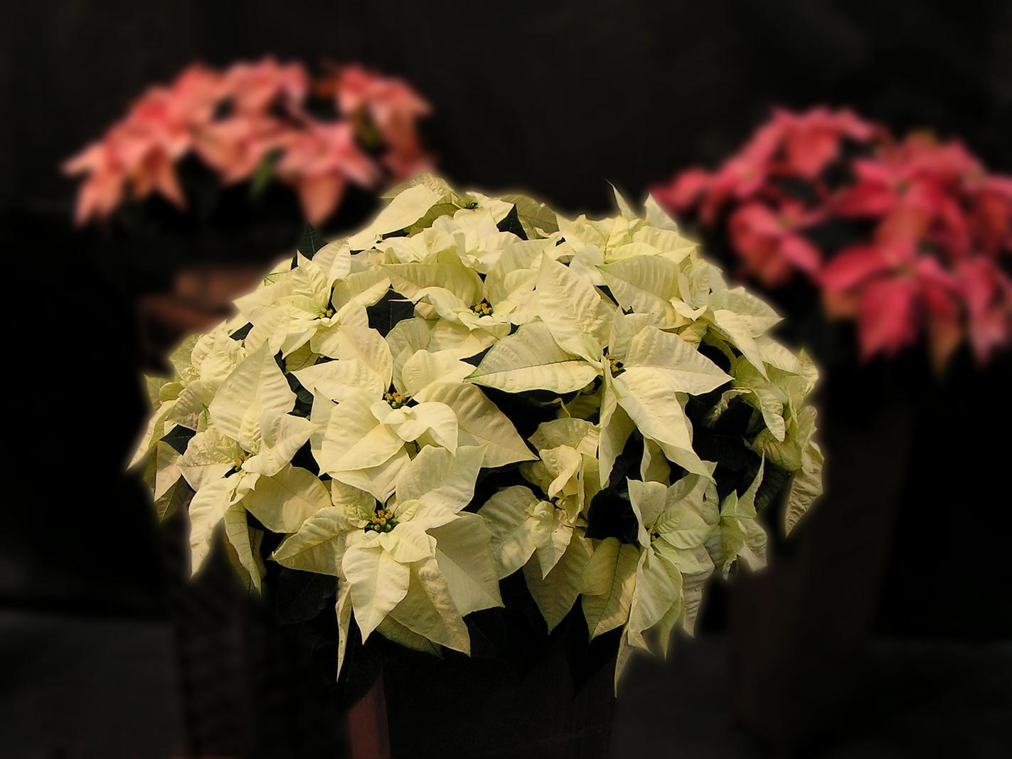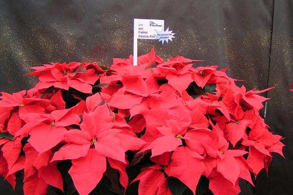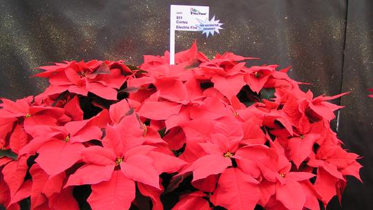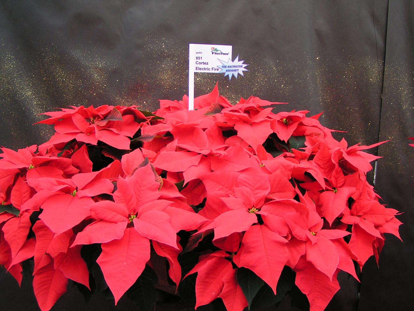 Name: deutsch: Poinsettie (Weihnachtsstern); botanisch: Euphorbia pulcherrima (pulcherrima = sehr schön)