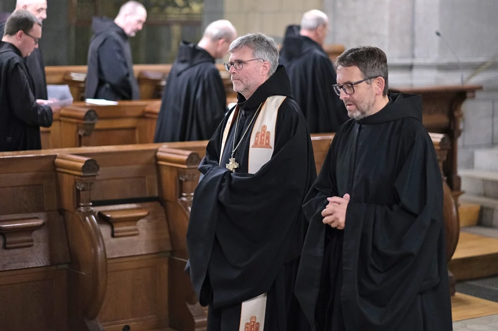 Bei der Amtseinführung des neuen Führungsduos wurde Pater Petrus Nowack (OSB) gedankt, der als Prior-Administrator jahrelang kommissarisch Verantwortung für die Benediktinerabtei Maria Laach trug. Die Mönche hatten sich seit 2014 auf keinen neuen Abt einigen können. Deshalb leitete die Ordenskongregation in Rom eine Apostolische Visitation in die Wege: Die beiden Visitatoren, der (inzwischen emeritierte) Eichstätter Bischof Gregor Maria Hanke sowie Abt Barnabas Bögle aus der Abtei Ettal (Oberbayern) führten am Montag im Kapitelsaal des Klosters P. Mauritius Wilde und P. Maximilian Krenn offiziell in ihre Ämter ein. Anschließend wurden der neue Abt und der Prior in der Klosterkirche begrüßt – mit festlichem Glockengeläut und dem Lobgesang „Te Deum“ („Großer Gott wir loben Dich“). Bei der