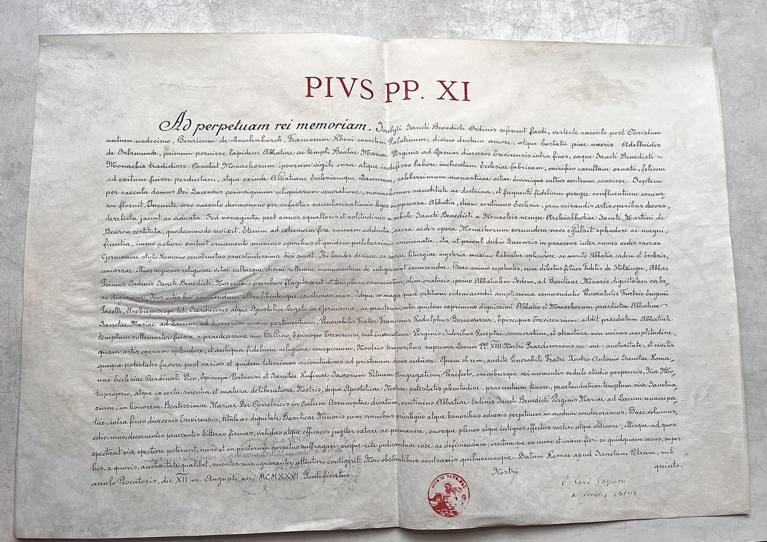 Im Jahr 1926 hat Papst Pius XI die besondere Schönheit der Kirche, aber auch die liturgische und pastorale Tätigkeit der Benediktiner von Maria Laach mit diesem Ehrentitel ausgezeichnet. Das päpstliche Privileg ist für uns Mönche heute nach wie vor eine Verpflichtung. Denn was braucht unsere Welt heute mehr als das Gebet, das Feiern der Gegenwart Gottes und das praktische Zeugnis des christlichen Glaubens?