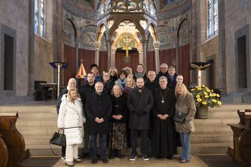 Abgerundet wurde der Besuch durch eine Stadtführung, die weitere Eindrücke von Neuwieds Innenstadt und ihrer Entwicklung vermittelte. Wie OB Jan Einig erklärte, geht es schließlich auch darum, dass perspektivisch eine stärkere Zusammenarbeit im Bereich Tourismus denkbar ist. „Warum sollen wir Menschen, die in Neuwied übernachten, nicht auch einen Besuch in Maria Laach empfehlen und umgekehrt? Wir müssen hier tatsächlich über die sprichwörtlichen Kirchtürme hinaus denken und die Stärken unserer Region miteinander verbinden“, machte er deutlich. Auch die traditionelle Neuwieder Religionsvielfalt und der in der Stadt aktive „Rat der Religionen“ waren Themen der Gespräche.