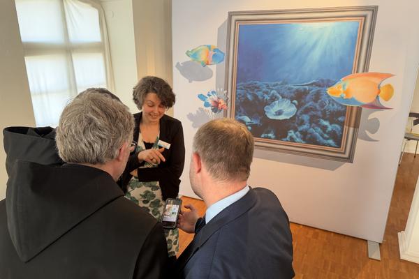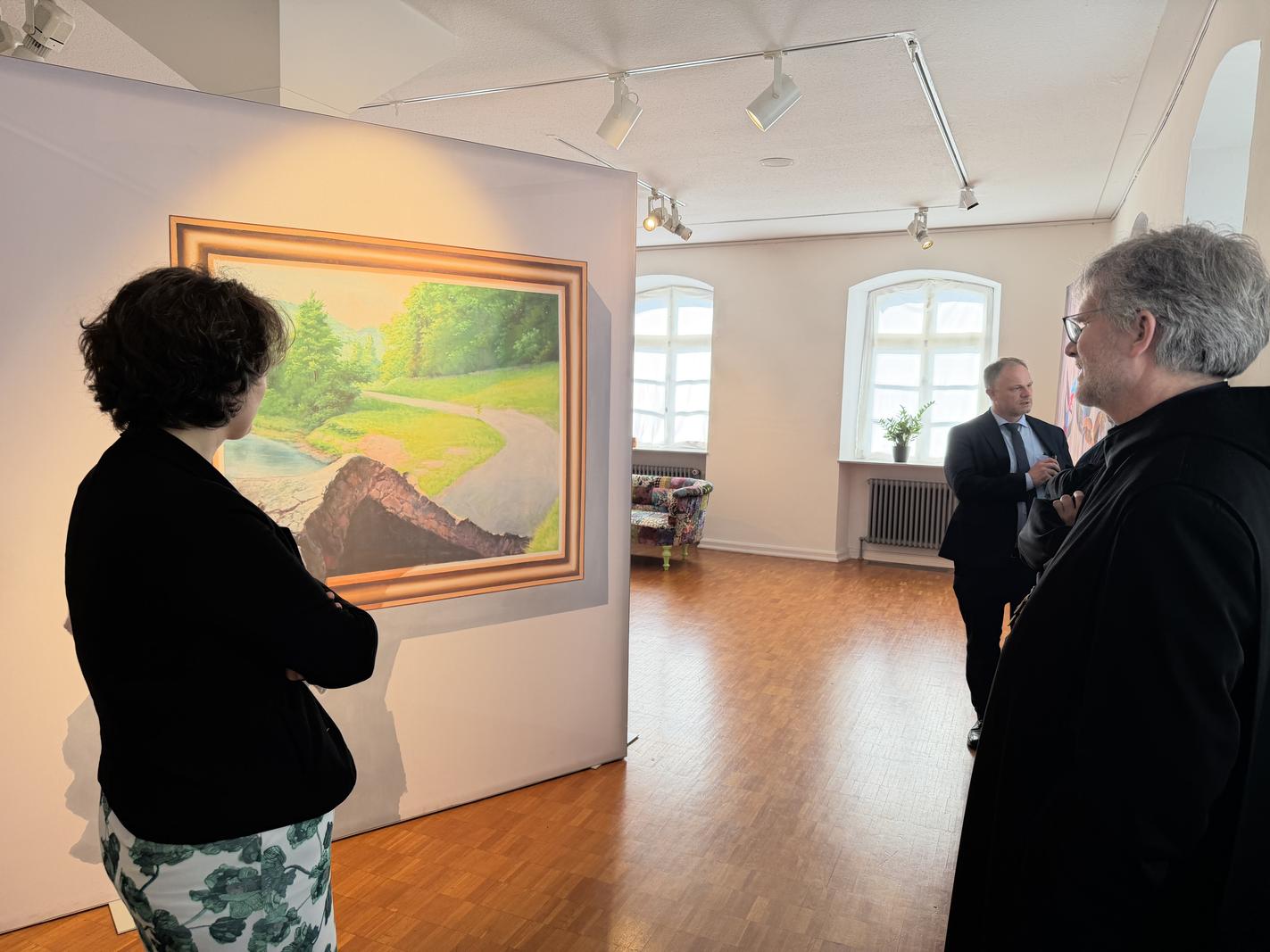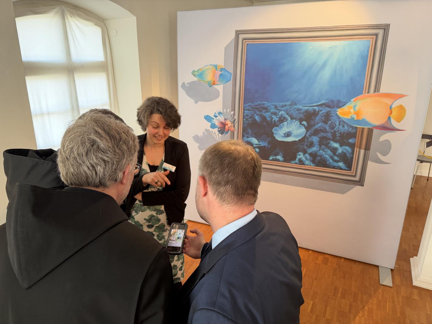 Den von gegenseitigem Interesse und spürbarer Wertschätzung geprägten Besuch nutzten OB Einig, Beigeordneter Ralf Seemann, Stadtwerke-Direktor Stefan Herschbach und Joachim Kozlowski(Altwied) aber nicht nur für Gespräche, sondern auch für gemeinsame Erlebnisse. So tauchten sie in der Neuwieder „STADTGALERIE Mennonitenkirche“ in die aktuelle Ausstellung „Tricture 3D“ ein. Die dort gezeigten Motive luden ein, selbst Teil der Kunstwerke zu werden