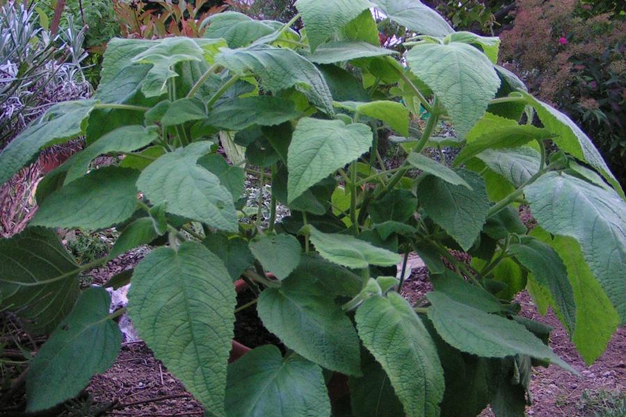 Er stammt aus Mittelamerika wird ebenfalls bis zu ca. 150 cm und mehr hoch. Die Blätter sind relativ groß, lindgrün und erinnern an Lindenblätter – weswegen er auch „Zimmerlinden-Salbei“ genannt wird. Er hat ein fruchtiges Aroma. Die rosa bis karminroten Blütenrispen erscheinen von Januar bis März. Die Blütenrispen sind im Gegensatz zu den anderen Arten verhältnismäßig groß – wie die Pflanzen ja auch.