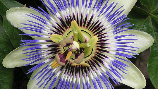 Die insgesamt über 450 Passiflora-Arten sind im tropischen Amerika beheimatet und bieten eine Vielzahl von Blütenfarben und -formen. Die Blüte erinnert an die Leidenssymbole Christi.