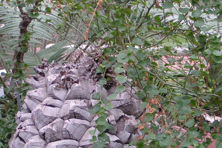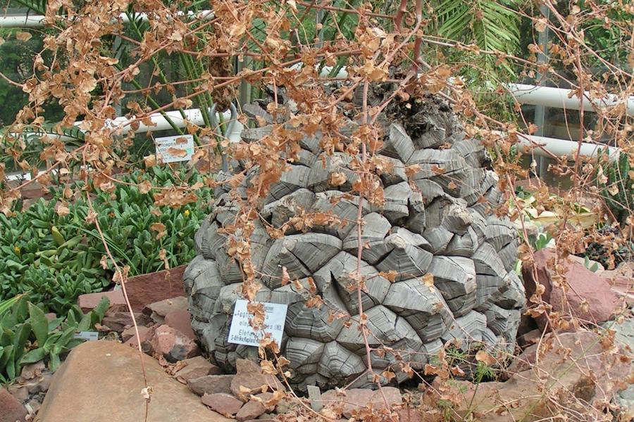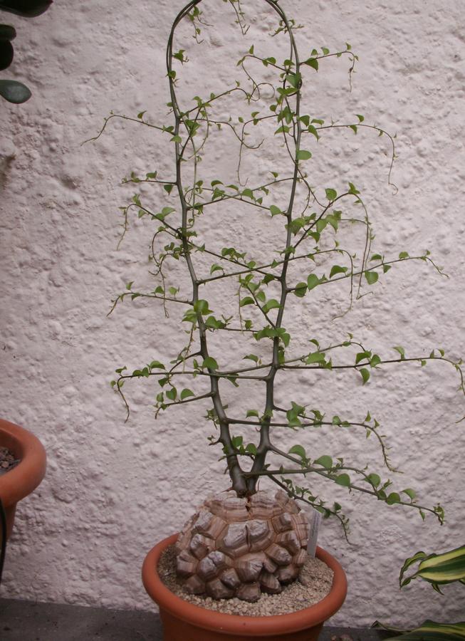 Schildkrötenpflanzen gehören zu diesen sog. Kaudexpflanzen. Der Kaudex ist gewissermaßen der in der Basis verdickte Stamm, der bei diesen Arten sowohl unterirdisch als auch teilweise oberirdisch zu finden ist. Die Dioscorea-Arten ziehen Wasser und Nährstoffe in den Kaudex, das Laub vertrocknet. Die Pflanze lebt in dieser Zeit auf Sparflamme. Wenn die Klimaverhältnisse wieder günstiger sind, bilden sich schnell neue Triebe.