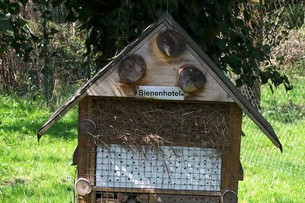 Steinhaufen als Mauswieselversteck und einige Ansitzstangen für Greifvögel sind aufgestellt. Kleine Blumentöpfe dienen den Ohrenkneifern als Tagesversteck. Honigbienen sammeln Pollen und Nektar der Obstbäume und Sträucher. An der Südseite des Obstgartens ist zur Nützlingförderung eine ca. 500 m lange Totholzhecke angelegt.