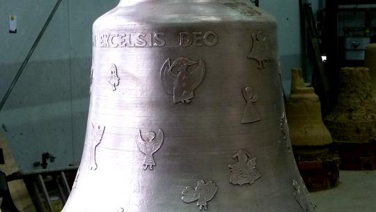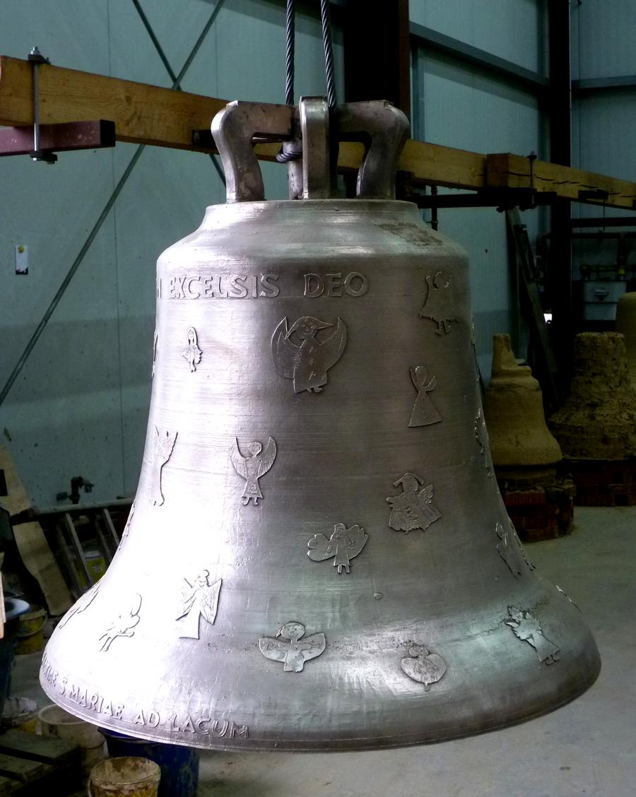 Die Friedensglocke wurde in der Glockengießerei Maria Laach gegossen und von Kindern mit Engeln verziert. Auf dem Adventsmarkt 2013 hatten 41 Kinder Engel gemalt, die mit Hilfe der Mitarbeiter der Glockengießerei in Wachs übertragen wurden und anschließend auf dem Glockenmodell befestigt wurden. Diese Engel bilden nun die Glockenzier für die inzwischen gegossene und in der Abteikirche aufgestellten Bronzeglocke, die rund 260 kg wiegt.