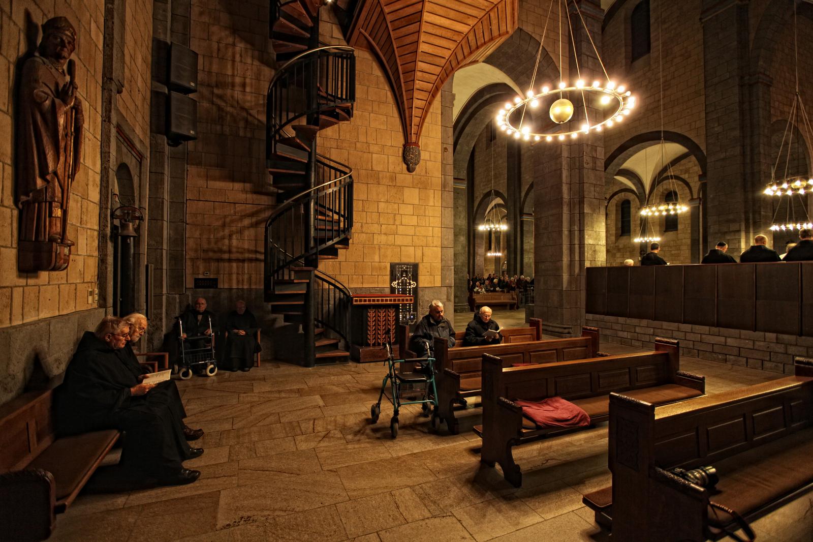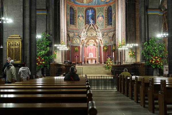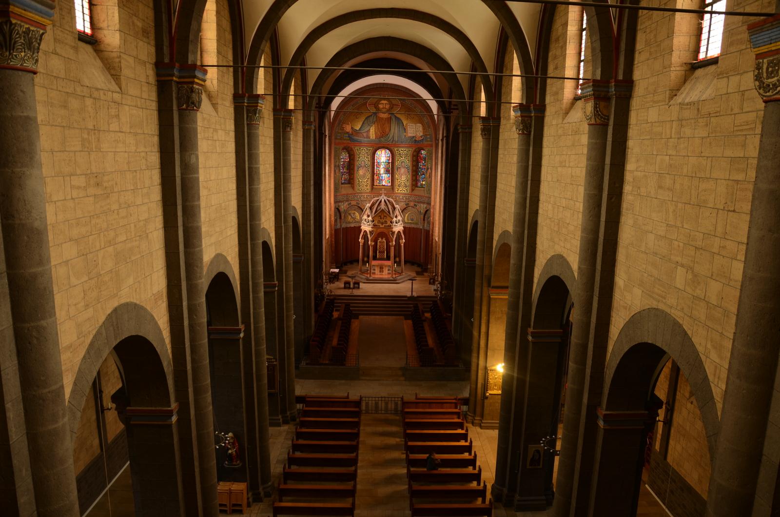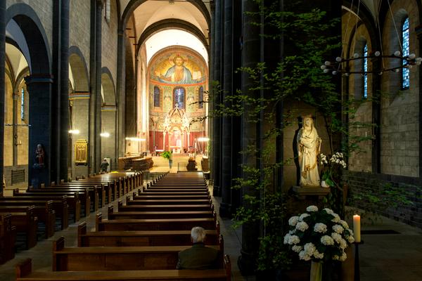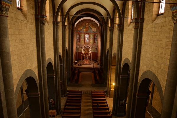 Das Innerere der Abteikirche Maria Laach ist von auffallend schlichter Schönheit geprägt.
